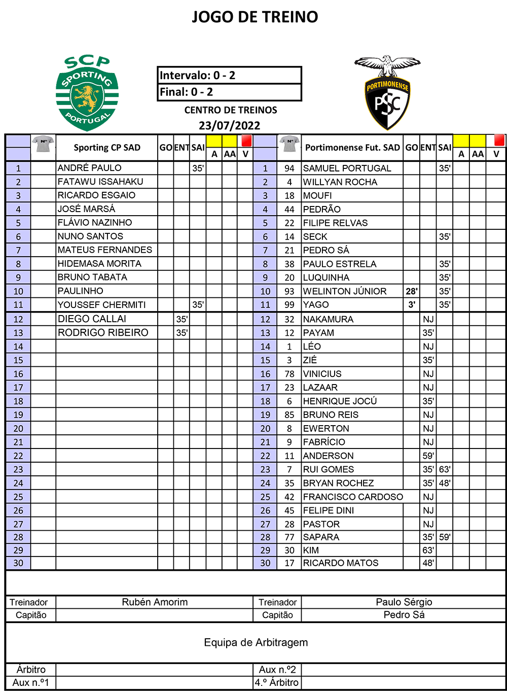 O Portimonense ganhou ao Sporting por 2-0, num jogo-treino disputado em Lagos esta quarta-feira de manhã. A partida teve duas partes de 35 minutos e ao intervalo já se registava o resultado com que a terminaria o amigável.