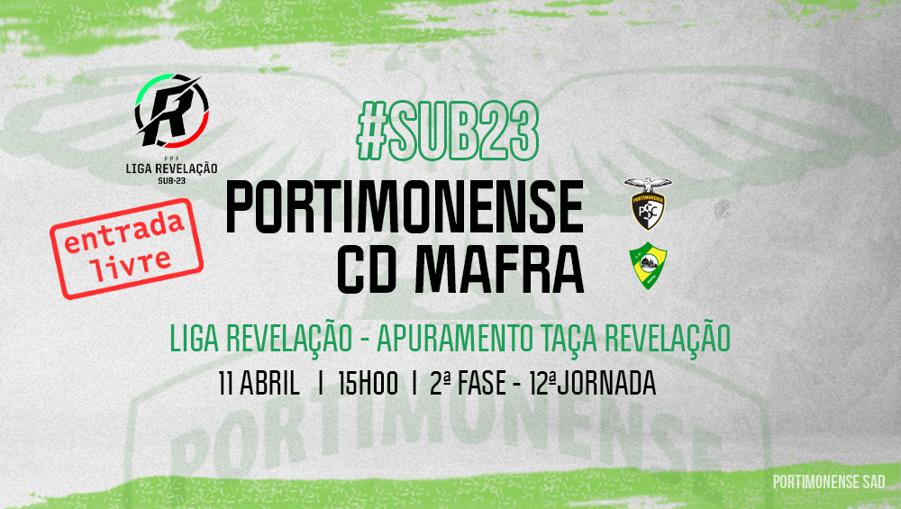 Os Sub23 do Portimonense defrontam o CD Mafra para a 11.ª jornada da Liga Revelação 2.ª Fase - Apuramento Taça Revelação, dia 11 de abril às 15H00 no Centro de Estágio - Estádio Dois Irmãos.