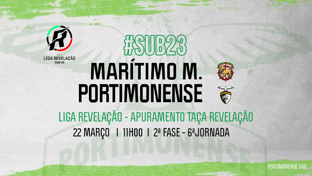 Os sub-23 do Portimonense defrontam o Marítimo da Madeira, quarta-feira às 11:00 horas no Estádio do Machico, em jogo em atraso da 6.ª jornada da Liga Revelação 2.ª fase do apuramento da Taça Revelação.